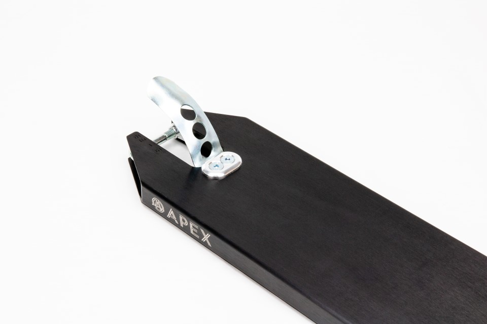 Le Deck Apex 5″ Noir Peg Cut est considéré comme le deck le plus premium dans le monde de la trottinette freestyle. Fabriqué en Australie avec un niveau de précision inégalé, il se distingue des productions asiatiques classiques. Conçu spécialement pour le skatepark, ce deck allie performance, durabilité et légèreté, avec un design hybride et plus large que les deck apex classique qui permet également de s’essayer au street.