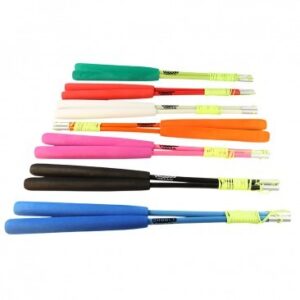 Des baguettes en fibre de verre de la marque juggle dream. Elles sont colorées, avec un manche en mousse coloré également, et confortable.