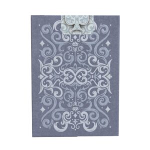 La conception présente des tons variés de gris cendré et comprend une feuille d’argent brillante avec deux niveaux de gaufrage pour un effet 3D.