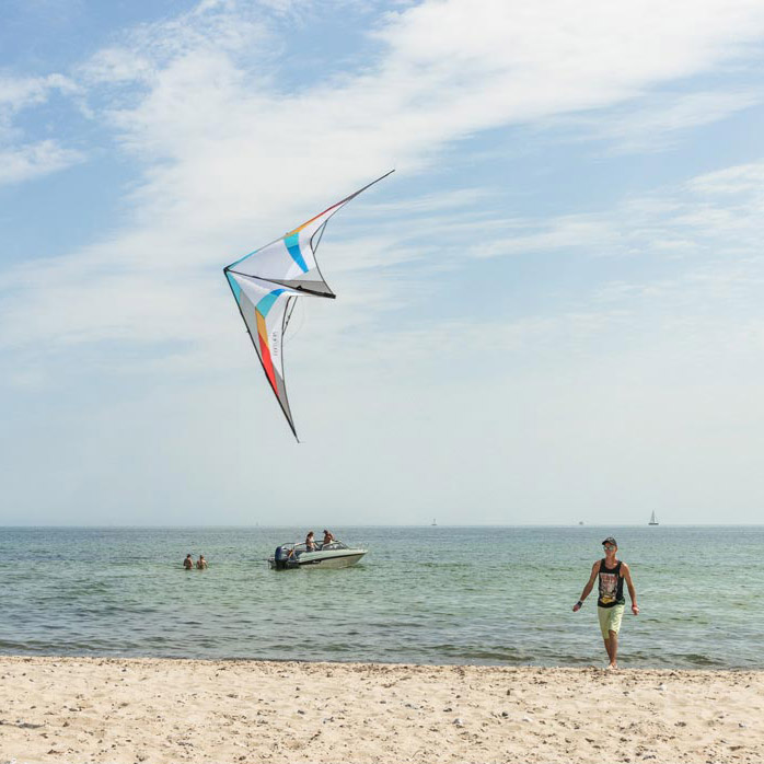 Ce cerf-volant, à l’allure magistrale dans le ciel, ne nécessite pas beaucoup d’adaptation, permettant au pilote d’effectuer des manoeuvres sans difficulté.