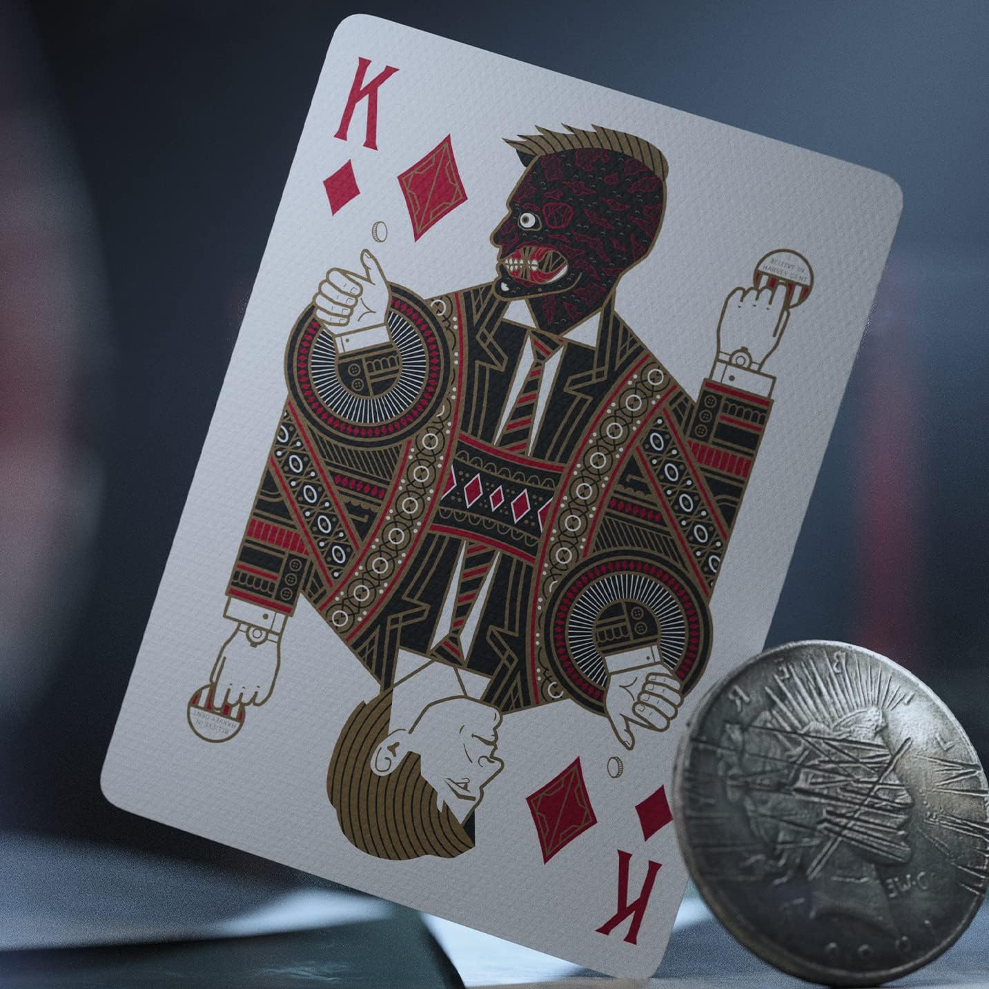 Chaque aspect des cartes à jouer The Dark Knight Trilogy a été créé à partir de zéro : y compris les costumes personnalisés, la conception des personnages, les As, la conception du dos et tout le reste ! Si vous regardez attentivement, vous remarquerez plusieurs easter eggs qui satisferont même les plus grands fans.
