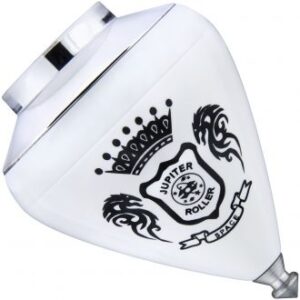 La toupie Jupiter Roller est équipée d’une pointe montée sur roulement à billes. Donc ce roulement va permettre une durée de rotation beaucoup plus élevée que sur une toupie à pointe fixe. Ainsi on obtient plus de temps pour enchainer des figures, ce qui va aussi permettre de réaliser les tricks plus complexes. Attention cependant, une toupie équipée de roulement est un petit peu plus fragile qu’une toupie à pointe fixe. Si vous êtes débutant, ou si vous apprenez de nouvelles figures, nous vous conseillons donc d’utiliser ce modèle sur une surface molle (éviter le bitume ou toutes surface où l’impact au sol pourrait être violent lors de chutes de la toupie. A l’exception de deux ou trois figures, vous pouvez toutes les réaliser avec des toupies à pointe fixe et à pointe montées sur roulement « roller ».